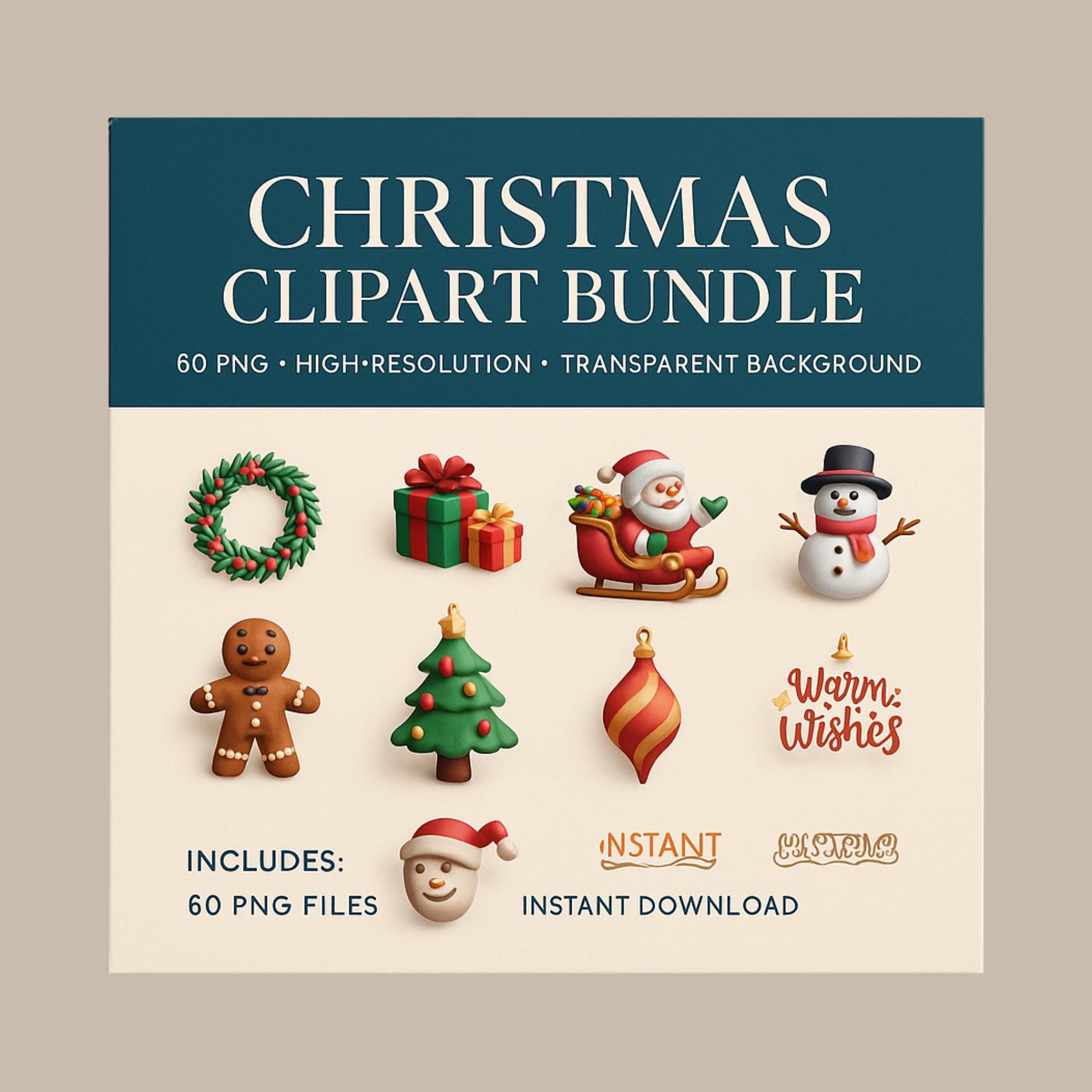 Bring the magic of the holidays to life with this beautiful retro and 3D Christmas clipart set.