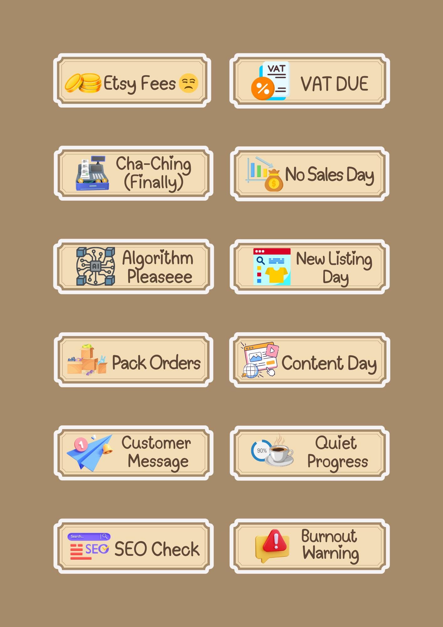 ✔ 12 unique Etsy Seller Planner Stickers